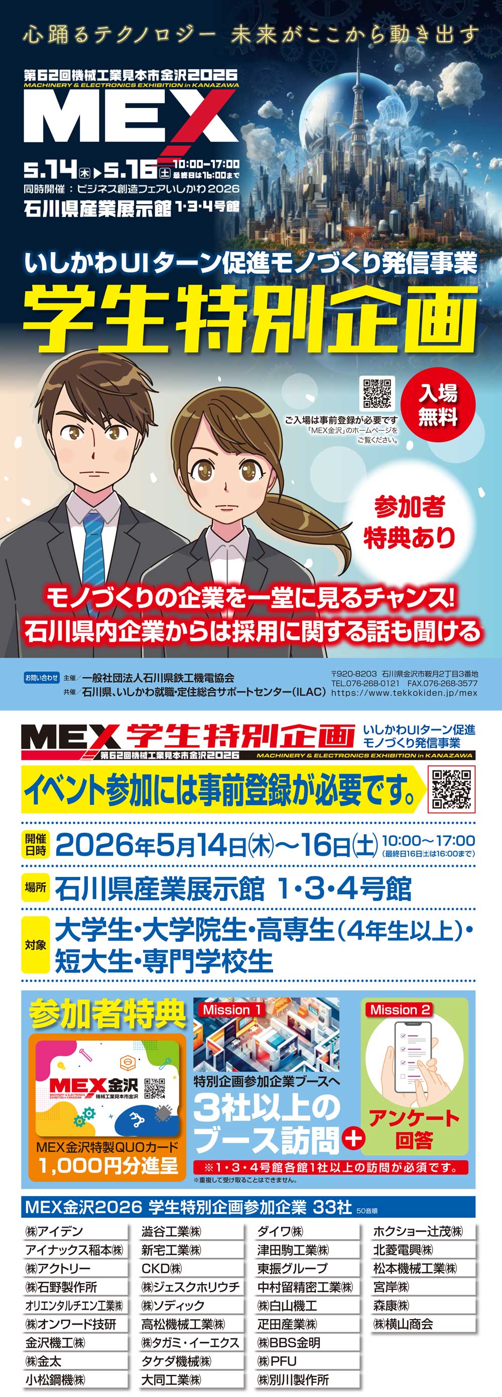MEX金沢2026 学生特別企画 会社説明会のお知らせ