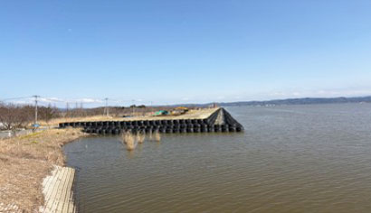 能登半島地震の影響で河北潟沿いの堤防を修復する工事が進んでいます。